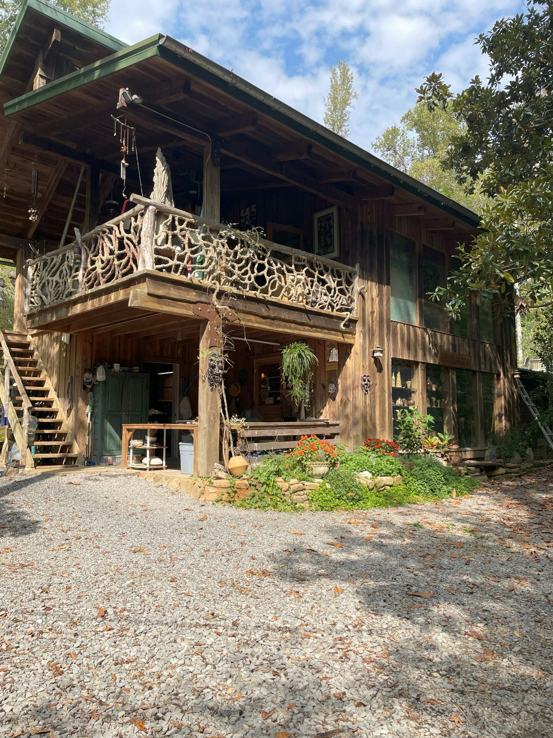 The property includes hand-crafted passive solar homes, some with solar electricity, and an art gallery featuring local artists. The pristine forest ascending the side of the Cumberland Plateau was last logged before the 1950’s, leaving some ancient giants over 100 years old.