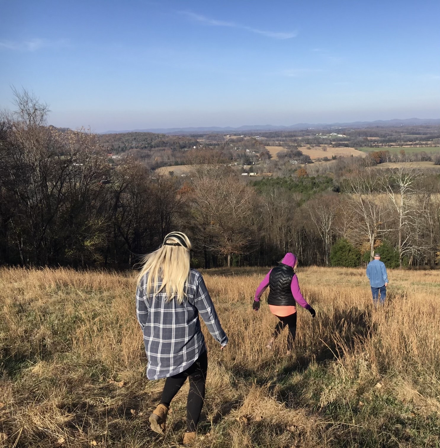 - Members of the Ogilvie family hiking at Peacock Hill.